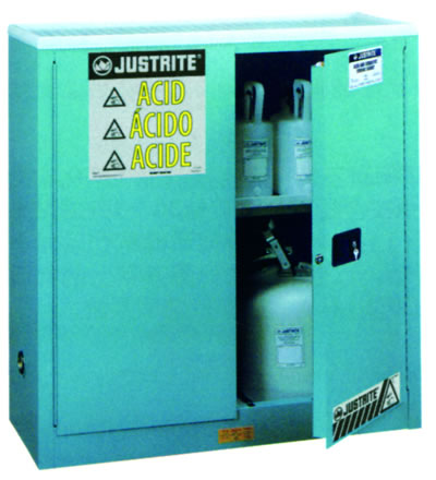 蓝色防酸安全柜 订货号:0901502 用(yòng)于腐蚀性液體(tǐ)的各种安全、适合性存储选择使得钢制安全柜成為(wèi)流行的选择。 Justrite所有(yǒu)型号都具有(yǒu)与Justrite的易燃安全柜相同品质特性,包括双壁结构、两个通风孔、接地線(xiàn)连接、可(kě)调节的搁板、防漏门槛、三点式自锁门和水平底座。為(wèi)了抵抗腐蚀性化學(xué)品,防酸安全柜还包含于镀锌钢架上的聚乙烯托盘和一个单独用(yòng)于底部蓄液槽的聚乙烯衬垫。 上一篇文(wén)章: V-TOP型安全帽 下一篇文(wén)章: 聚乙烯安全柜