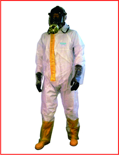 Nuprotex E一件式核尘埃防护服 订货号:0709003 RespirexNuprotex E為(wèi)非通风一件式防护服,其材料為(wèi)柔软的半透明阻燃PVC,主要防护核尘埃。所有(yǒu)的Nuprotex E防护服都有(yǒu) 标识, :2002 RespirexNuprotex E可(kě)在核尘埃污染严重的环境中对身體(tǐ)提供保护,其标定等级為(wèi)2级, :2002 所规定的内部泄露率 弹性密闭面罩可(kě)与多(duō)种呼吸防护面具配合使用(yòng) 保证头部可(kě)大范围的移动,并且不会影响防护服与面罩之间的密闭性 上衣轮廓结构使得防护服穿脱方便 外部双层重叠拉链 平坦袖口保证与安全手套密闭连接 平脚裤管保证与安全鞋密闭连接 上一篇文(wén)章: V-TOP型安全帽 下一篇文(wén)章:没有(yǒu)了